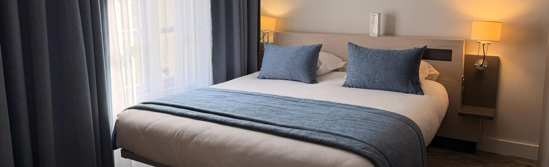Our Privilege rooms offer superior comfort and refined décor. More spacious, they feature a 160 cm bed and a little extra touch of soul: exceptional brightness, breathtaking views, or optimized space.